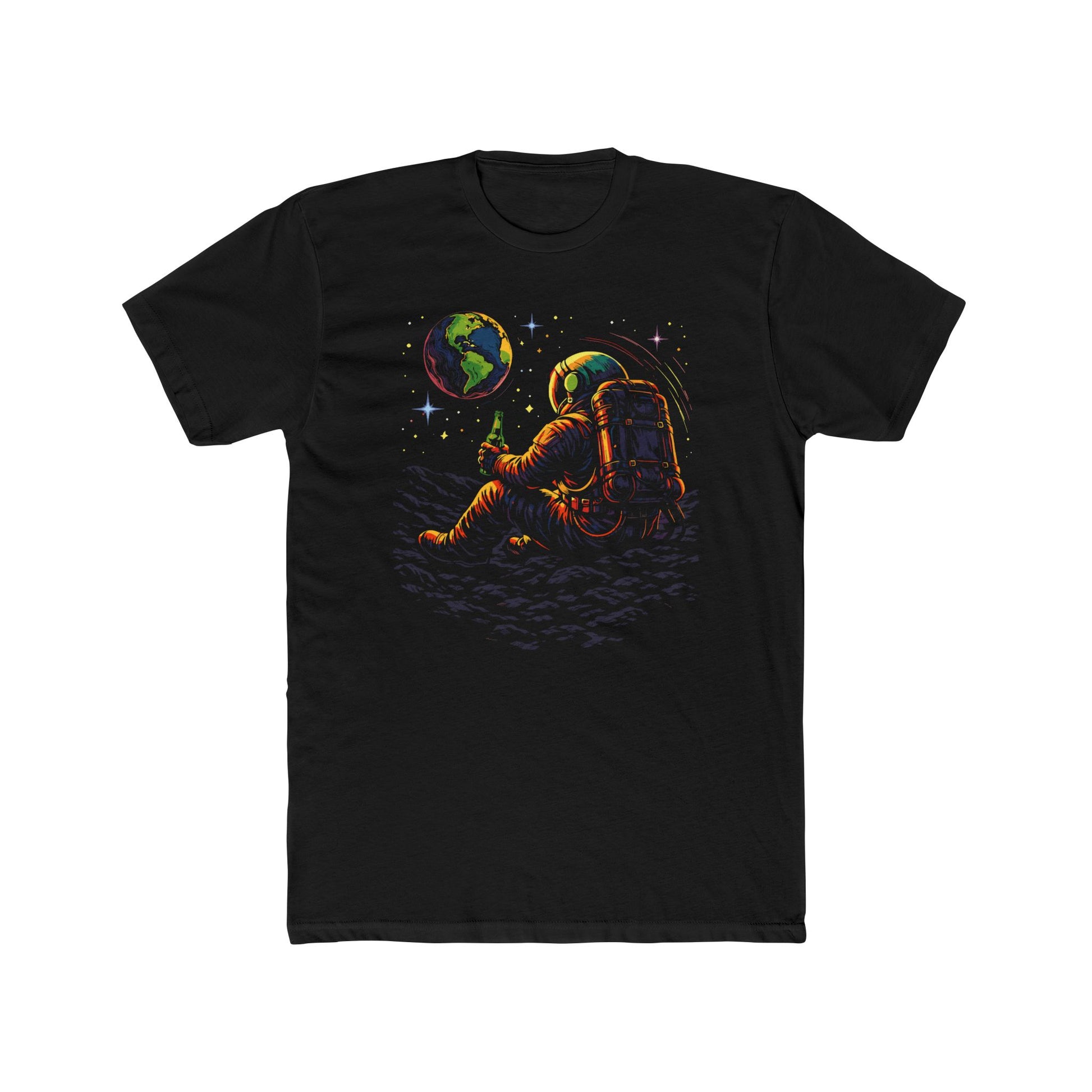 Astronaut Drinking Beer Looking at Earth T-Shirt, Space Beer Tee, Cosmic Chill Men's Tee