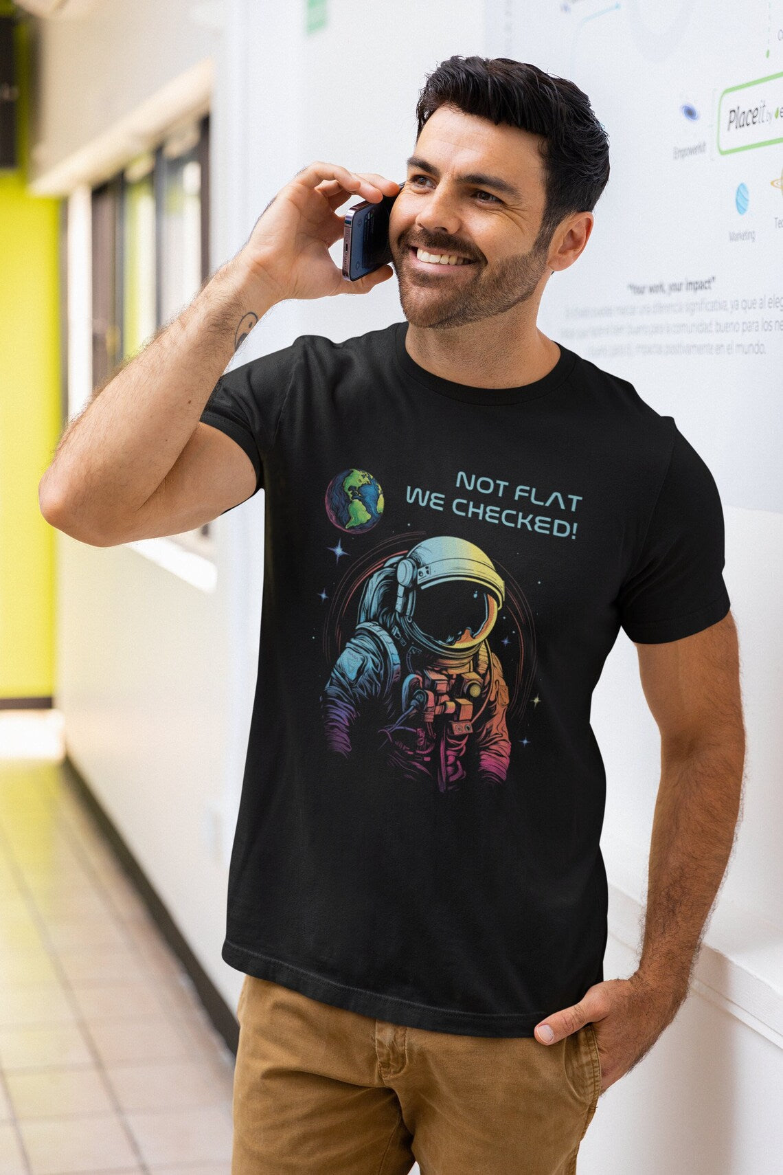 Not Flat We Checked T-shirt, Round Earth Astronaut Spaceman, Flat Earth Conspiracy, Science Tee