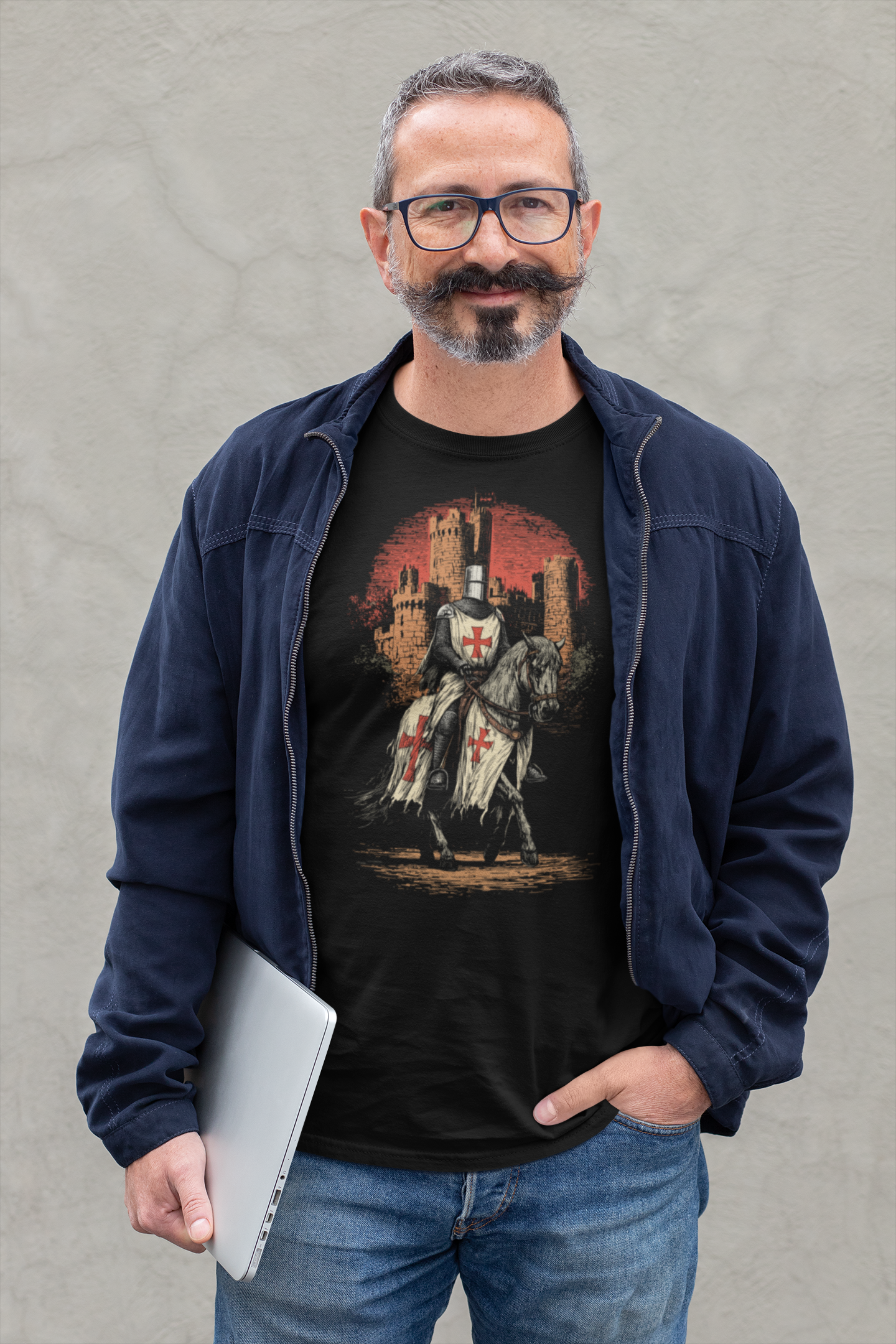 The Knight Templar Crusader T-shirt, Medieval Castle Illustration Shirt, Crusades Medieval Warrior Men's Tee